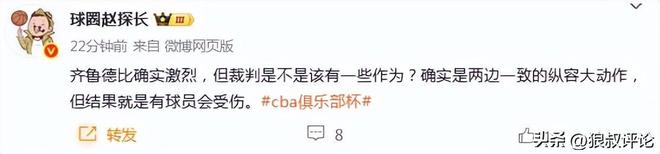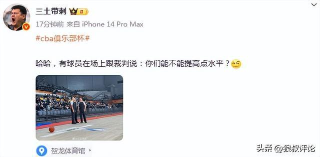 媒体人“三土带刺”发文点评:有球员在场上跟裁判说:你们能不能提高点水平?