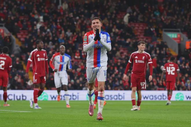 2025-26赛季英格兰联赛杯第四轮展开角逐,英超冠军利物浦主场对阵水晶宫。全场比赛战罢,主队利物浦输个彻底,十人利物浦0-3完败水晶宫,惨遭淘汰出局。